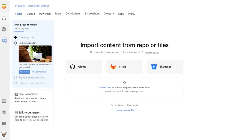 Cognitive load refers to the mental effort needed to complete and understand a task. Instead of making it easy to start using Lokalise, we overwhelm users with a long list of actions and calls to action (CTAs), which takes time to process.