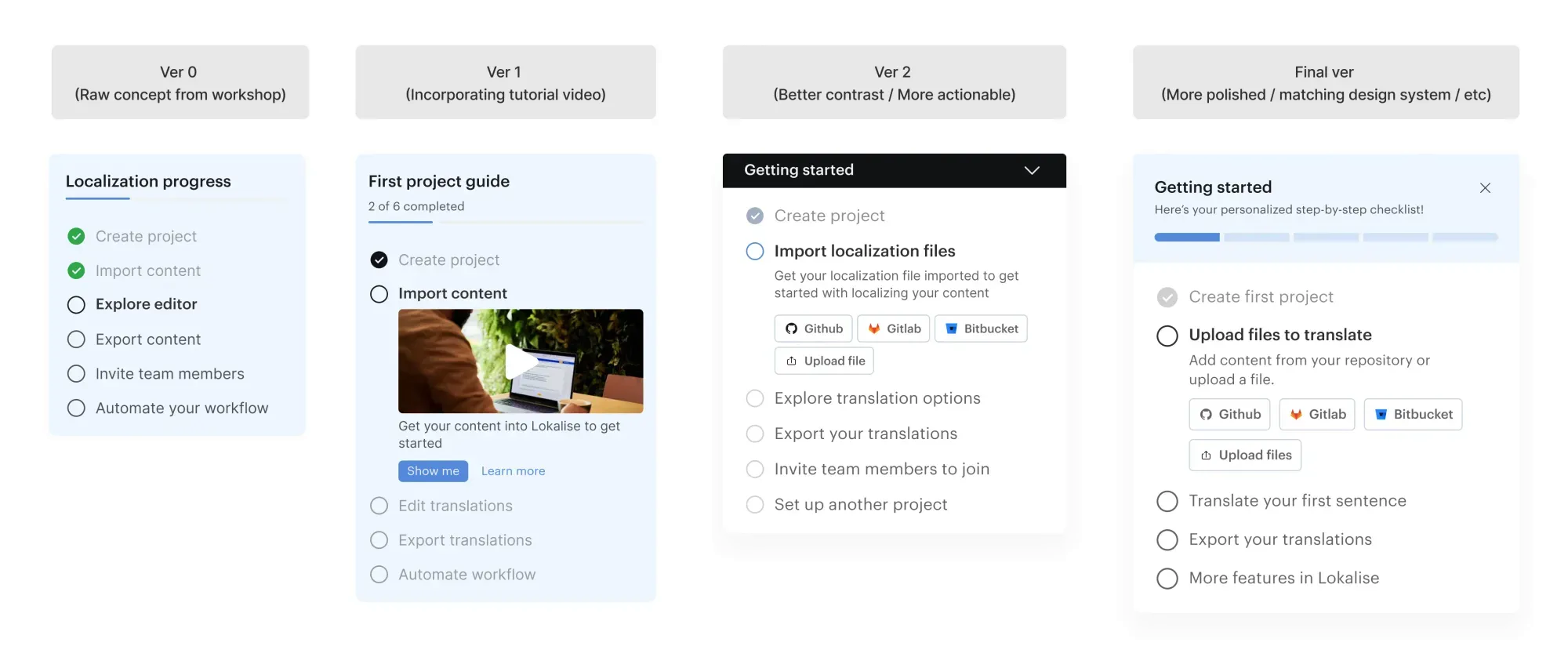 Lokalise onboarding redesign: updated flow versus the previous experience