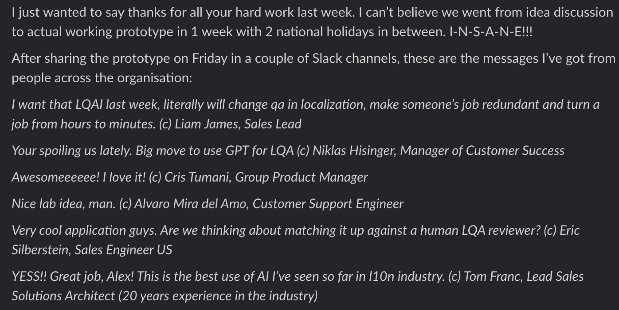 Moving to an AI-first review flow created measurable business impact and reduced repetitive QA effort for localization teams.