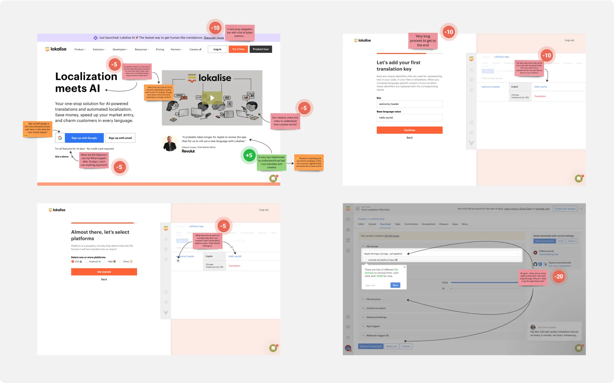 Through these steps, we have identified 3 major frictions that block users from onboarding to Lokalise.