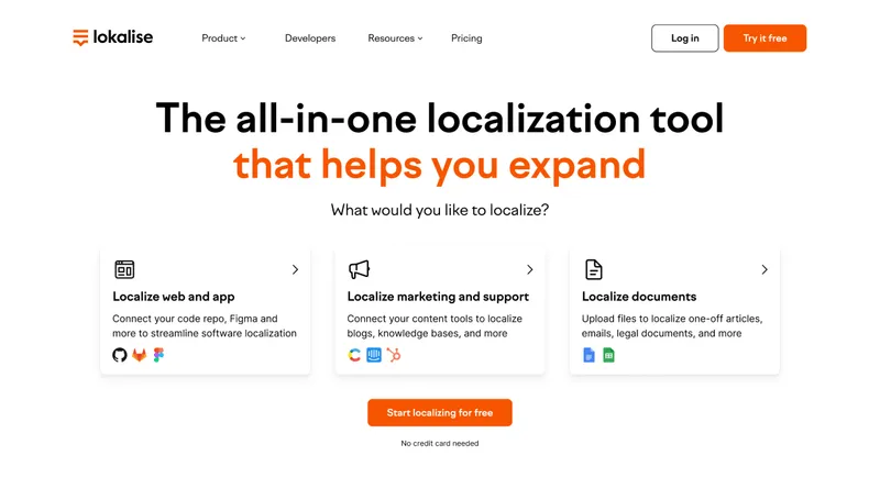 We rolled out a JTBD-based homepage after discovering that visitors often come to Lokalise to localize specific content types.